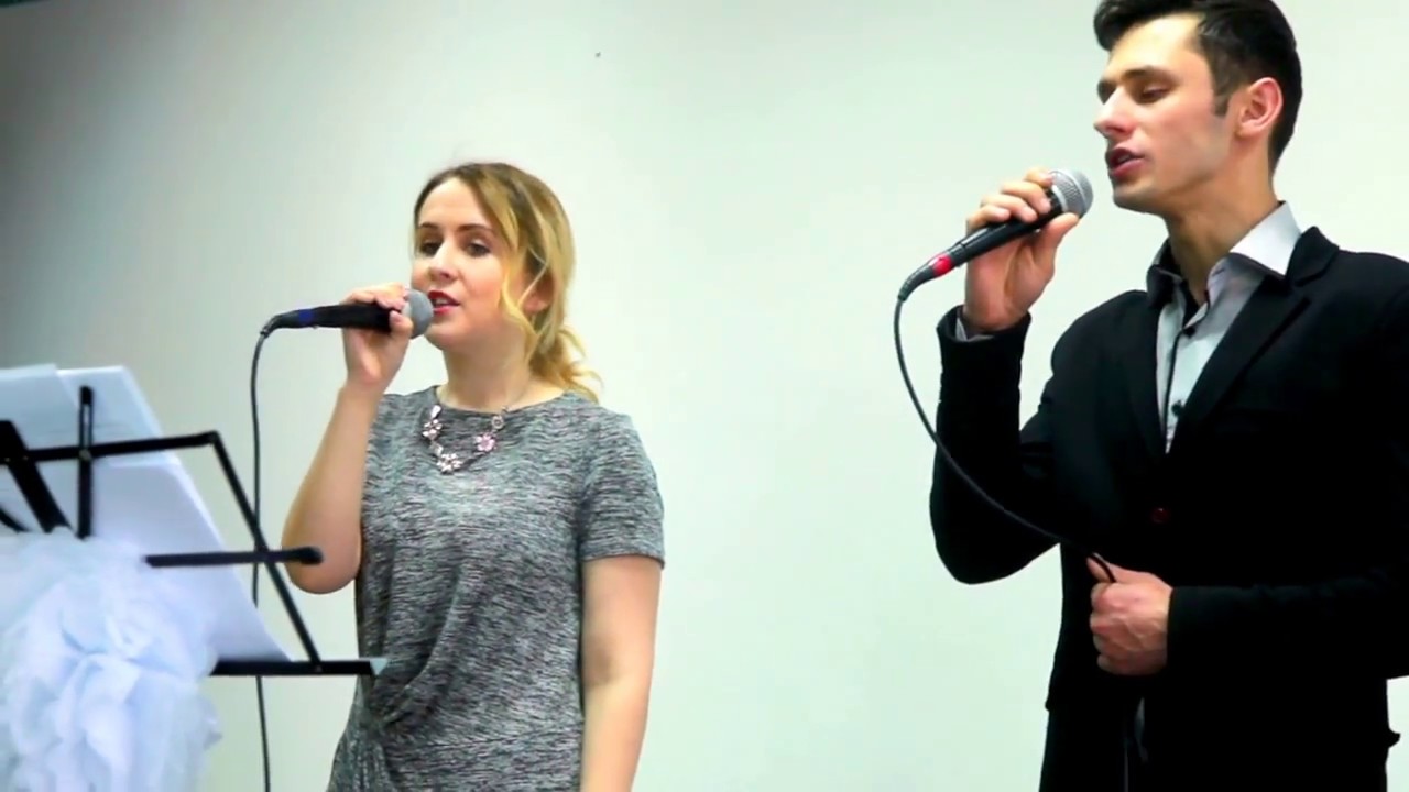 Елизавета Панькова и Андрей Голошивец поют на Пасху в церкви ЕХБ «Свет мира». 16 апреля 2017 года.